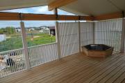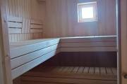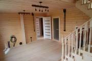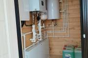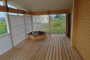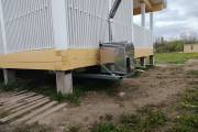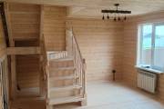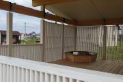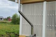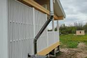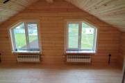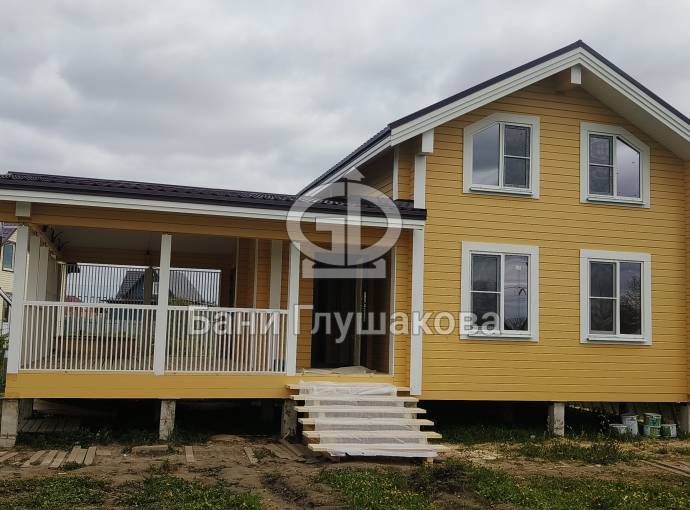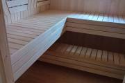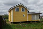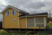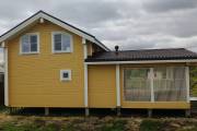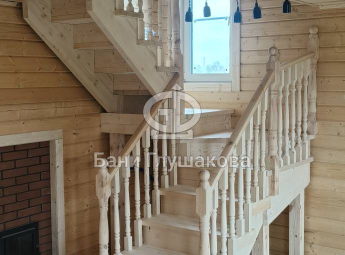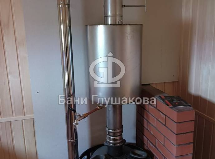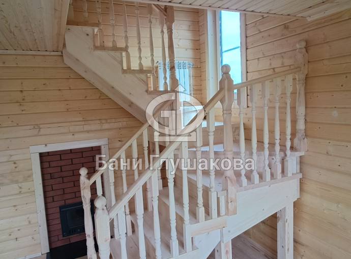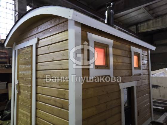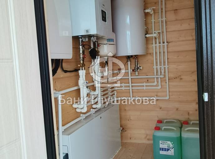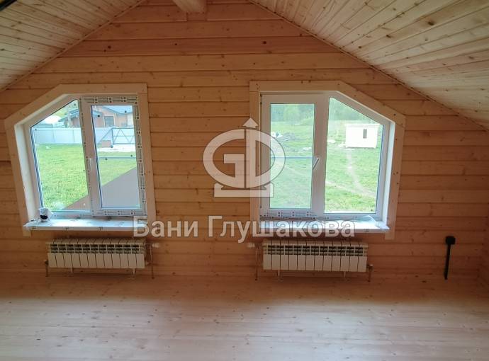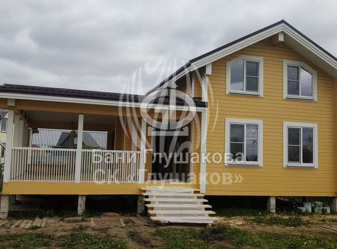 Баня построена из клеёного бруса 190×140 мм — прочного, долговечного материала с минимальной усадкой. По желанию клиента возможны варианты из сухого профилированного бруса или по каркасной технологии.
