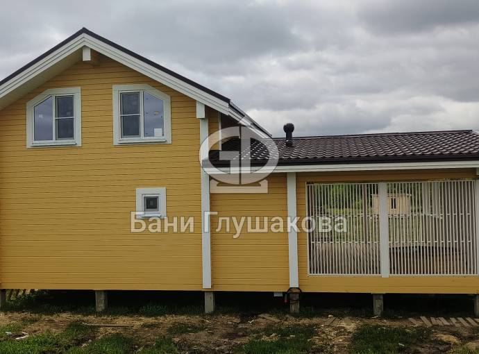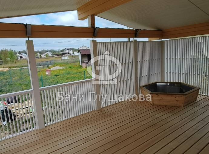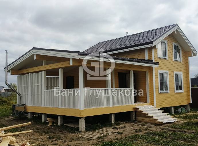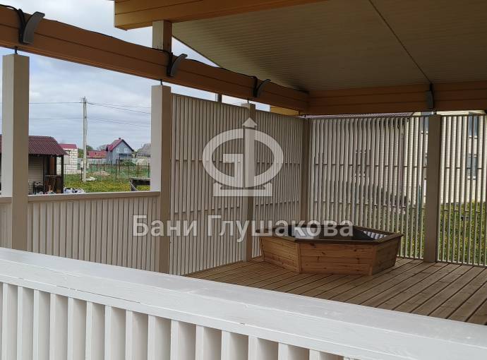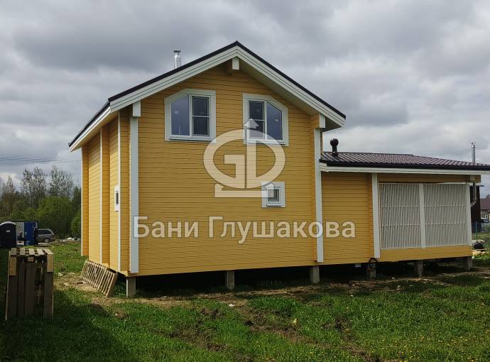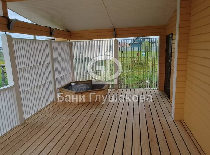 Представляем наш новый проект — просторную баню 7×11 метров с жилым мансардным этажом и большой крытой террасой, которая легко заменит беседку. Терраса — идеальное место для отдыха с друзьями или семьёй в любую погоду. А в качестве приятного бонуса мы установим в террасу купель с внешней печью — подарок от компании «Бани Глушакова».