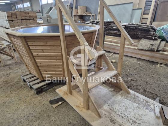 Продуманная форма с широкими стенками и низкими скамейками делает пребывание в чане удобным даже для компании из 4–5 человек.