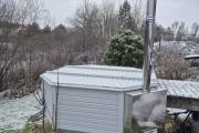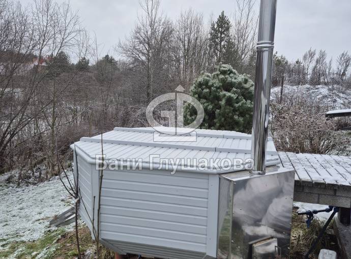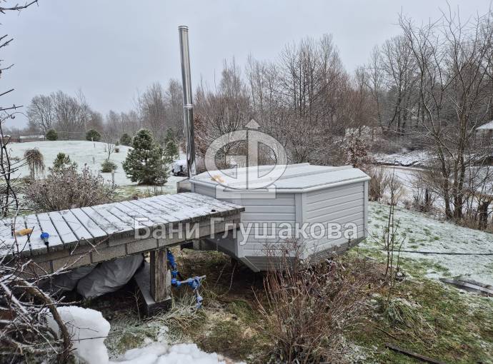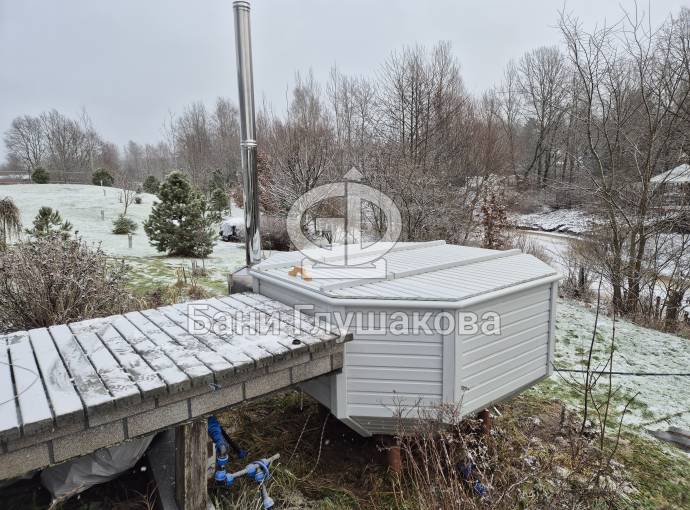 Снаружи купель обшита термомодифицированной вагонкой, которой не страшны сырость и палящее солнце. Материал по свойствам напоминает пластик.