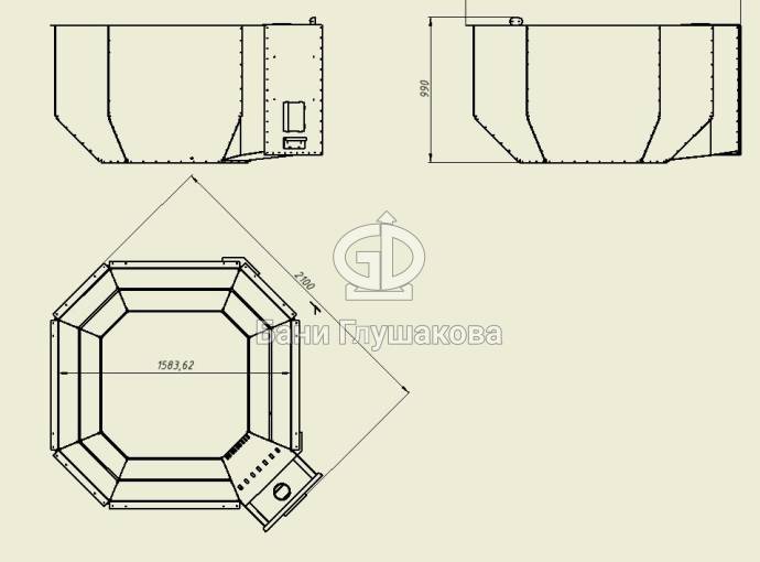 Банный чан 8 граней с подогревом со встроенной печью "Малый"