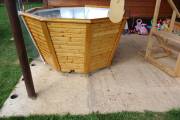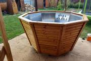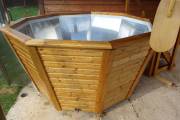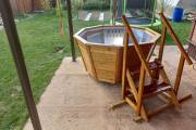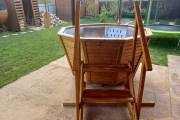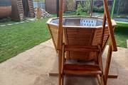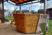 Большой надёжный чан для купания из нержавеющей стали конической формы. Благодаря наклонным стенам и низко расположенным скамейкам обеспечивается особый комфорт при купании.