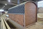 Размер универсальный – 2,4 на 6 метров, но на самом деле ограничений по размеру у бань такого типа нет – по запросу разработаем проект под ваши нужды.