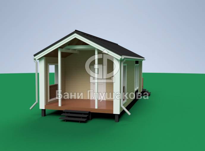 Размеры: основная часть бани 6,5х4 метров и 2х4 метров терраса.