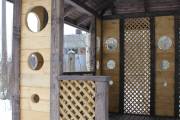 Съемные стекла из оргстекла 4мм на всех проемах, включая там где стоят деревянные сетки (перголы), пример беседки посмотреть по ссылке и также смотрите видео.