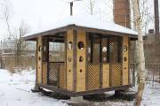 Беседка сделана из элементов вырезанных с помощью станков с ЧПУ, из сухой строганной доски