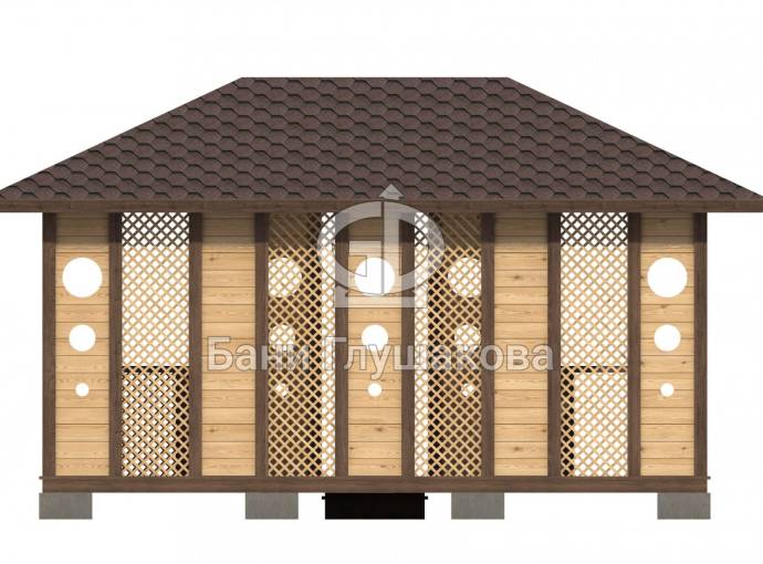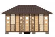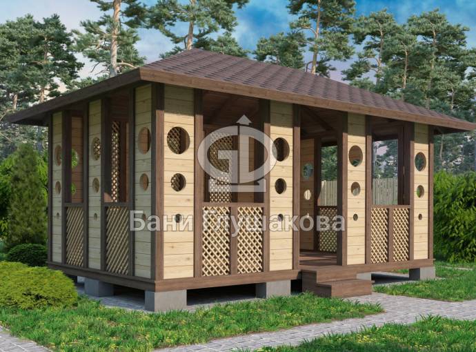 Перед вами проект оригинальной авторской беседки увеличенного размера 3х5. Выполняется на заказ на каркасе из бруса и сухой доски. Полностью ручная работа. В качестве дополнительных опций возможны остекление, установка комплекта деревянной мебели и мангала для беседок.