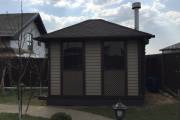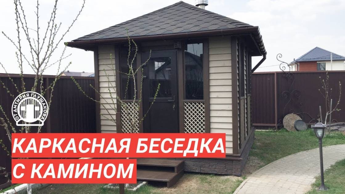 В мае 2021 завершили строительство красивой каркасной беседки с камином по эскизу заказчика. Здесь размещаем фото в качестве примера того, какие беседки мы строим. Это не стандартная комплектация, поэтому цену этого проекта не указываем.