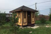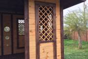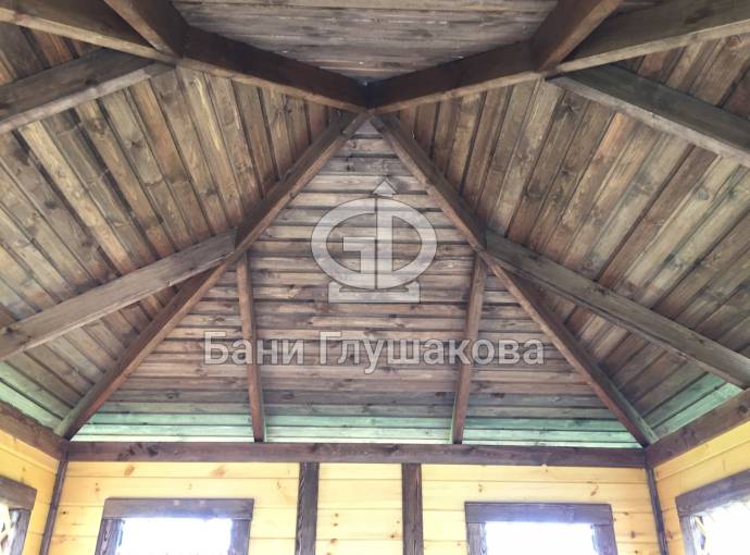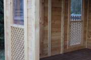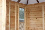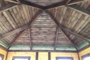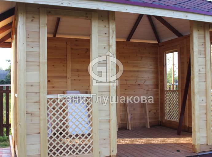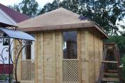 Глухие части беседки заполнены доской со смещением (в елочку)