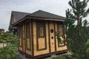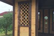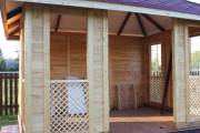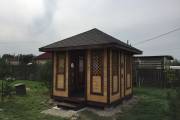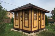 Беседка сделана из элементов вырезанных с помощью станков с ЧПУ, из сухой строганной доски