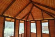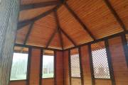 Глухие части беседки заполнены доской со смещением (в елочку)