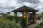 Глухие части беседки заполнены доской со смещением (в елочку)
