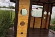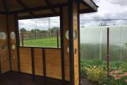 Съемные стекла из оргстекла 4мм на всех проемах, включая там где стоят деревянные сетки (перголы), пример беседки посмотреть по ссылке и также смотрите видео.