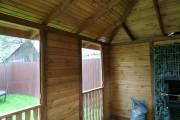 Глухие части беседки заполнены доской со смещением (в елочку)