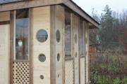 Съемные стекла из оргстекла 4мм на всех проемах, включая там где стоят деревянные сетки (перголы), пример беседки посмотреть по ссылке и также смотрите видео.