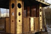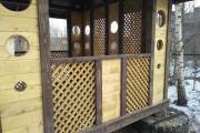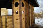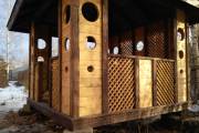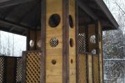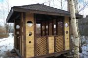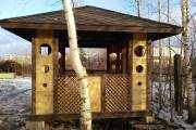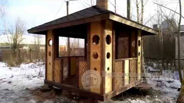 Беседка сделана из элементов вырезанных с помощью станков с ЧПУ, из сухой строганной доски