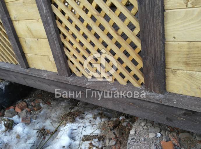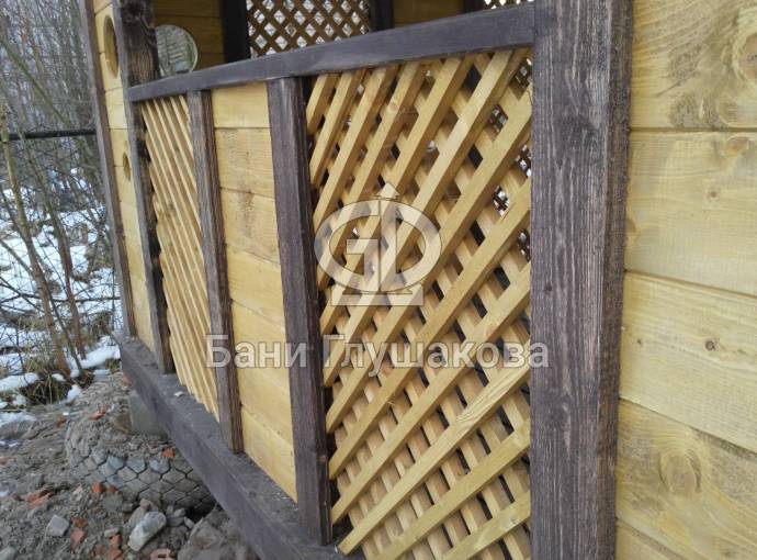 Сделана из сухих реек скрепленных между собой и вставленные в специальный паз в брусе стоек