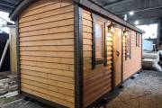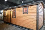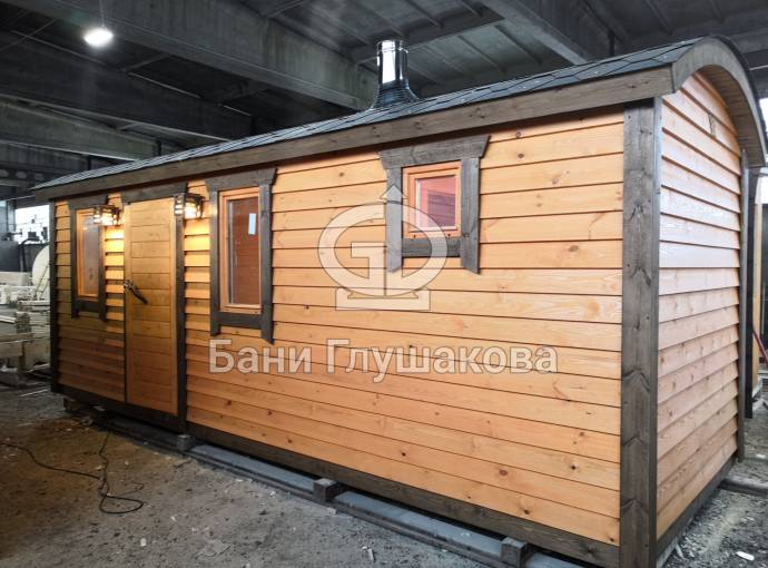 На фото пример перевозной бани «Буханочка», которая была сделана для выставочной площадки. В настоящее время образец продан, но вполне можно заказать повтор.