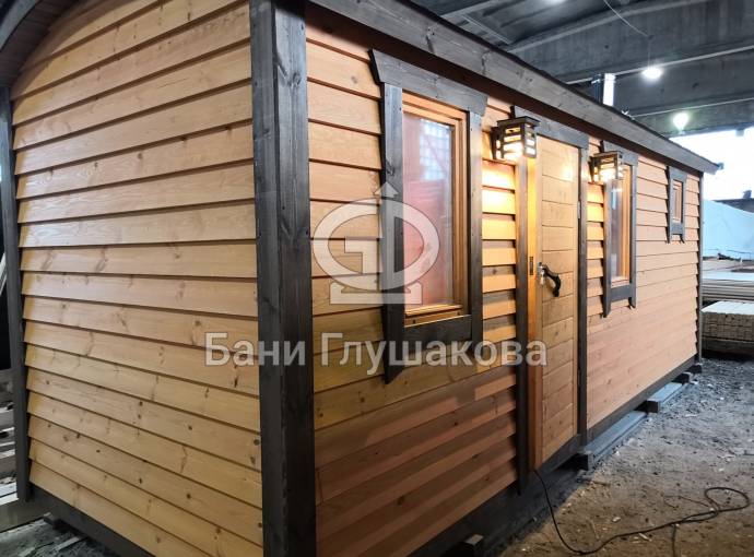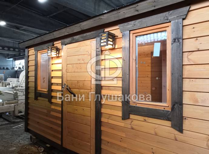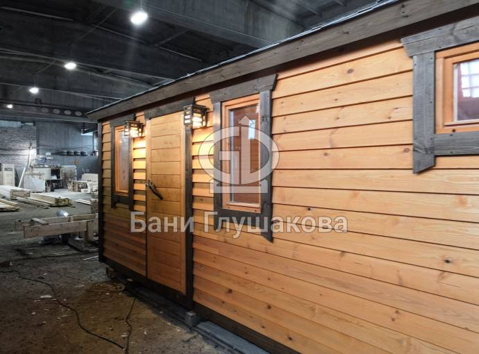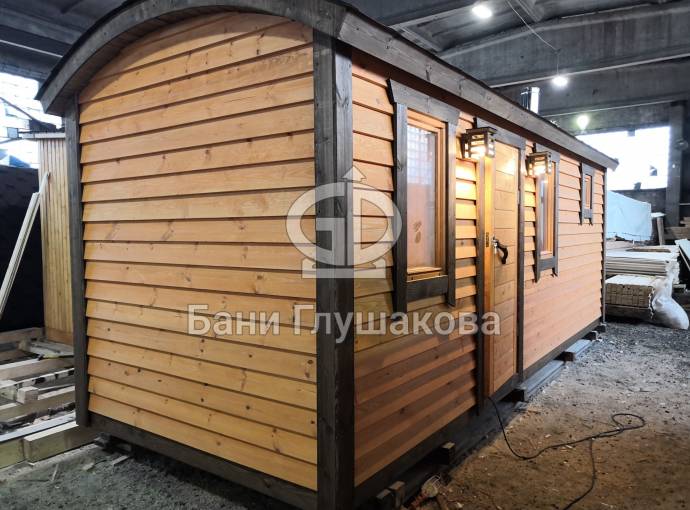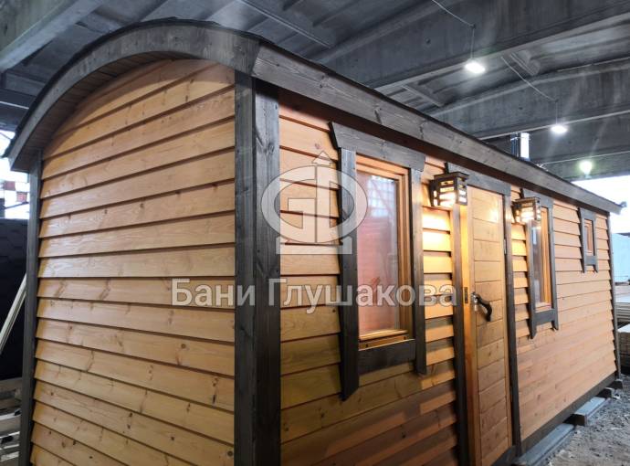 Эта баня была сделана и продана, она выставлена как пример возможного варианта исполнения.