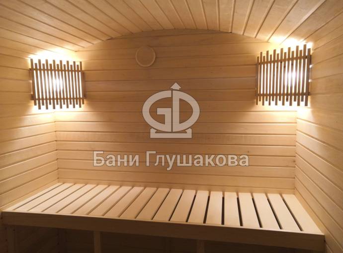 Можно установить светильник потолочный в комнате отдыха, ссылка на все фото тут, помещается в бани бочки увеличенного диаметра, в Буханочки и Бурже, беседки