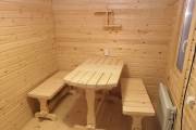 В бане хорошая планировка, выносная топка, есть душевая система. В парной двухуровневый полог.