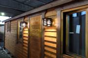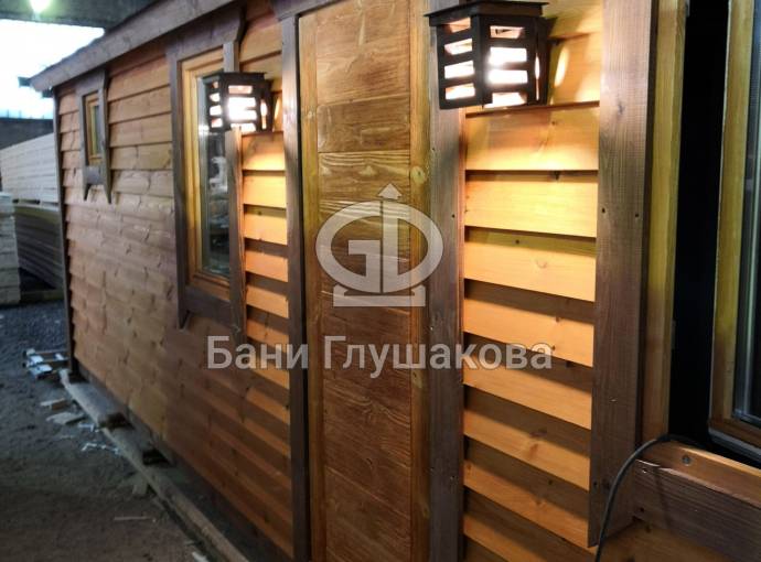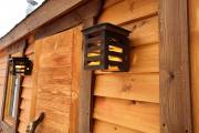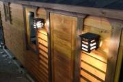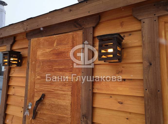 Можно установить один или более светильник у входной двери снаружи, подробнее по ссылке, в комплект входит покраска его в цвет окантовки бани, подключение на отдельный выключатель, светодиодная лампа. Стоимость 1700 рублей за штуку