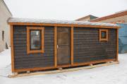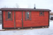 Модель, представленная на фото, уже оснащена и печью, и душем, отделка полностью под ключ. Заказывайте лучшее.