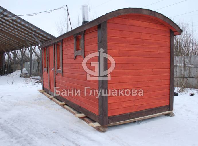 Мобильная баня «Буханочка» 2,2х5,7м с душевой системой