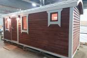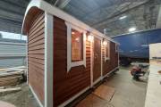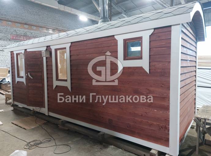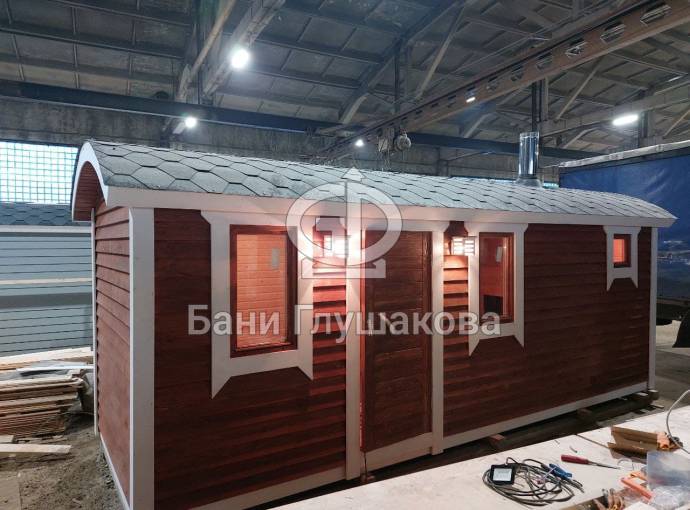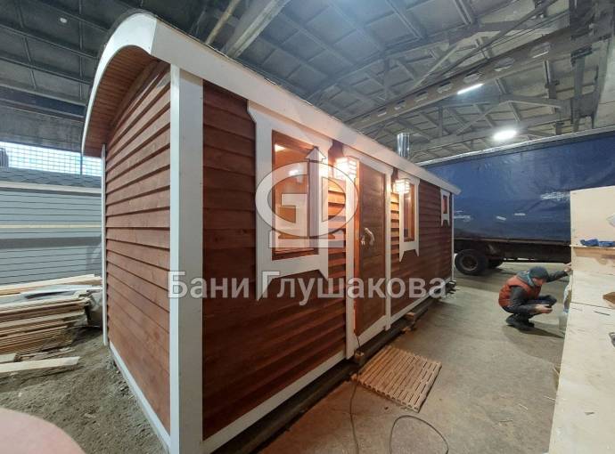 Баня сделана в конце декабря 2021 года — выставлена на продажу. Сейчас находится на производстве в Великом Новгороде. Смотрите, консультируйтесь, бронируйте. Уже на новогодних каникулах можно будет попариться в своей баньке.