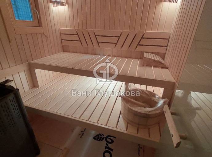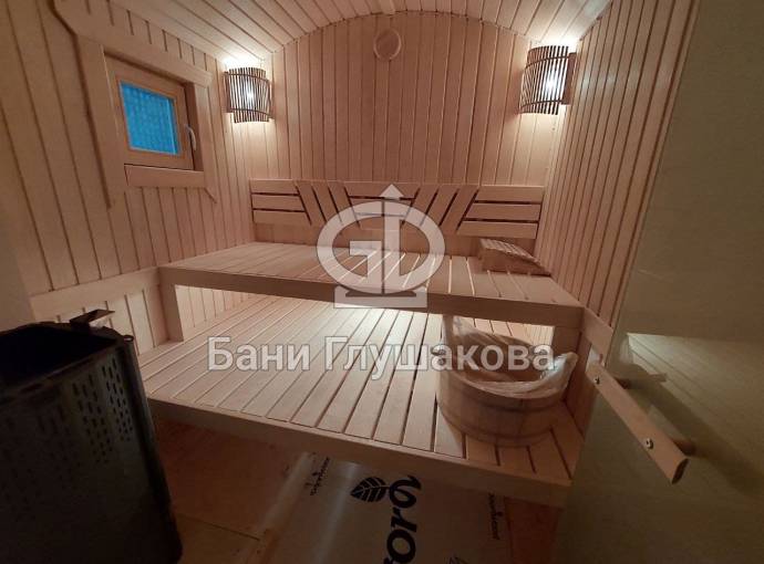 Внутри 3 помещения: комната отдыха, душевая и парная. Всё полностью отделано под ключ.