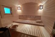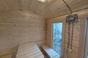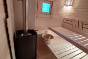 Есть комната отдыха, душевая и парная. Установлена печь Костёр Релакс 14 с выносной топкой со стеклянной дверцей.