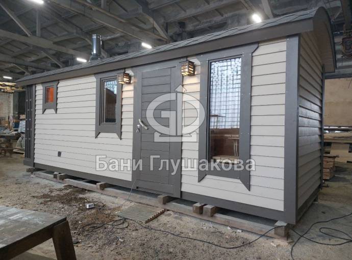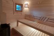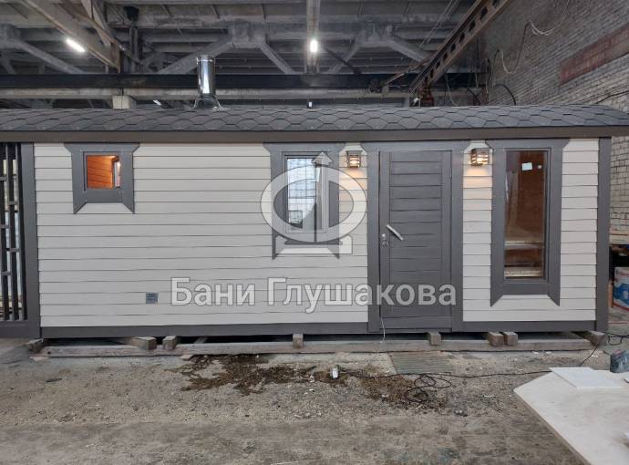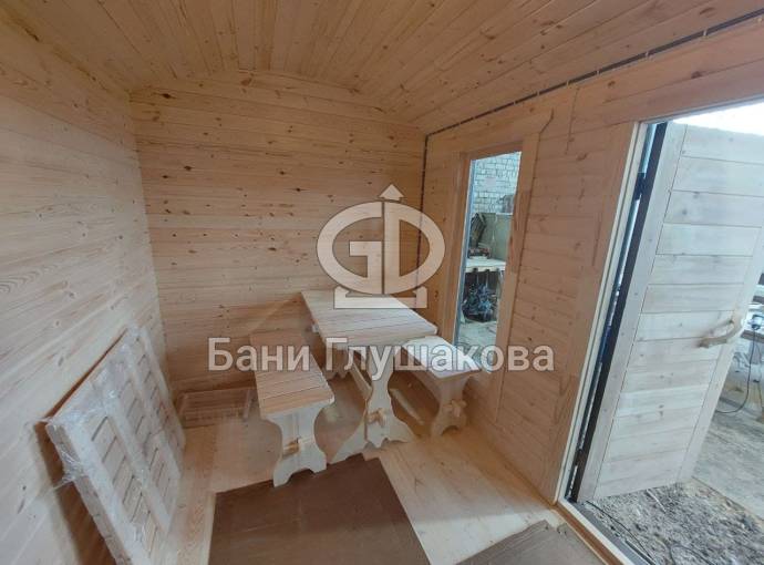 Внутри 3 помещения: комната отдыха, душевая и парная. Всё полностью отделано под ключ.