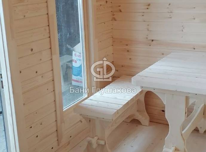 Внутри 3 помещения: комната отдыха, душевая и парная. Всё полностью отделано под ключ.