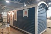 Размер 2,2 на 6 метров. Это каркасная перевозная баня «Буханочка», которая уже полностью готова к использованию. Буквально. В ней уже есть все наши фирменные улучшатели.