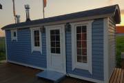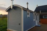 Размер 2,2 на 6 метров. Это каркасная перевозная баня «Буханочка», которая уже полностью готова к использованию. Буквально. В ней уже есть все наши фирменные улучшатели.