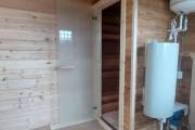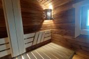 Душевое помещение и потолок в комнате отдыха обшиты термомодифицированной древесиной!