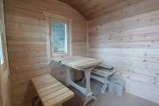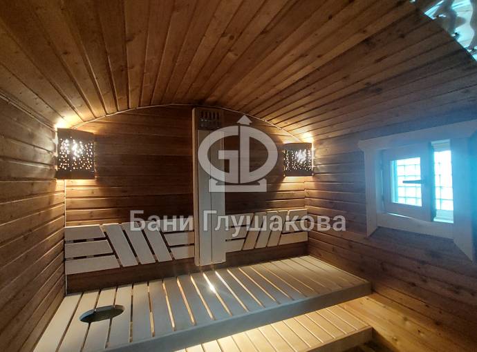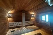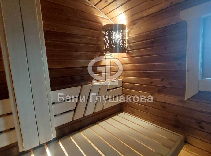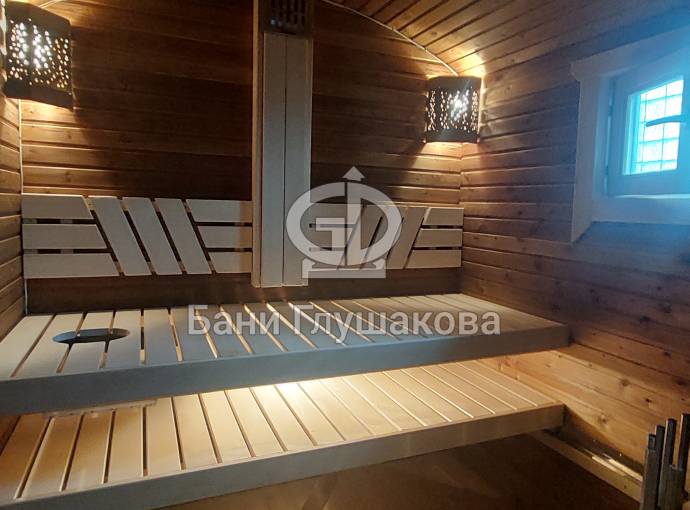 Внутри 3 отделения: парная, душ и комната отдыха. Баня укомплектована по полному разряду. Тут буквально есть всё необходимое и даже больше. В парной отличная вентиляция «димасту» и «второе дыхание» — любители попариться обязательно оценят. Полки широкие и очень удобные. Нижний ярус удлинён до стены: тут можно хранить разную банную утварь.