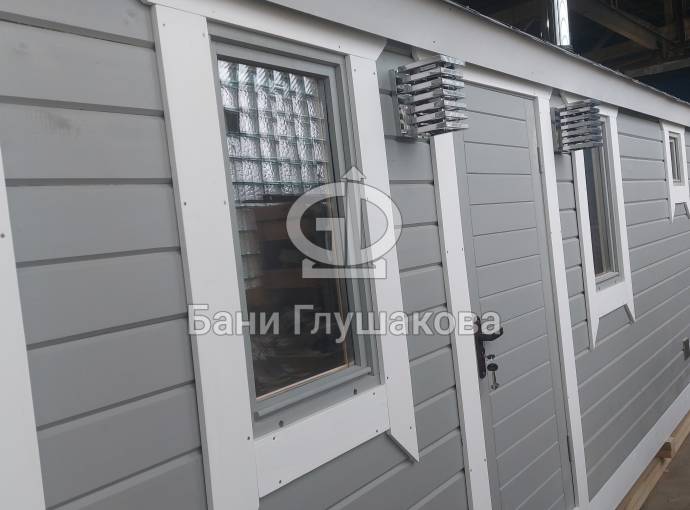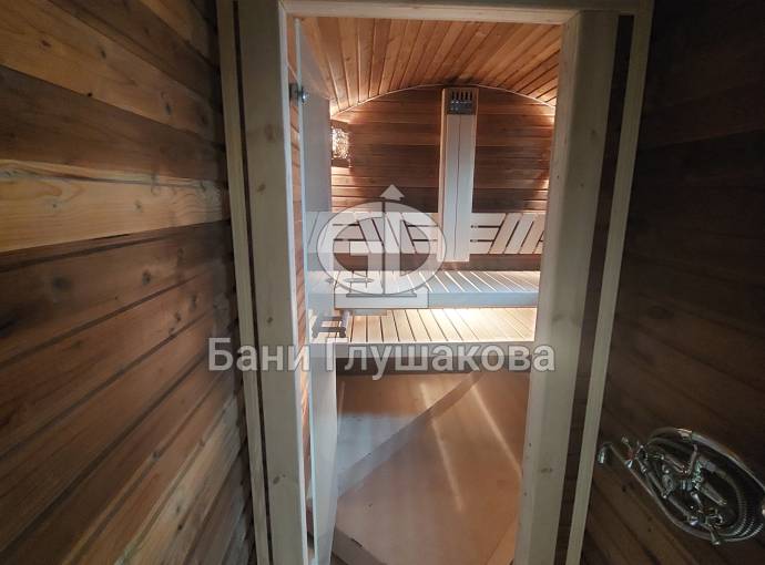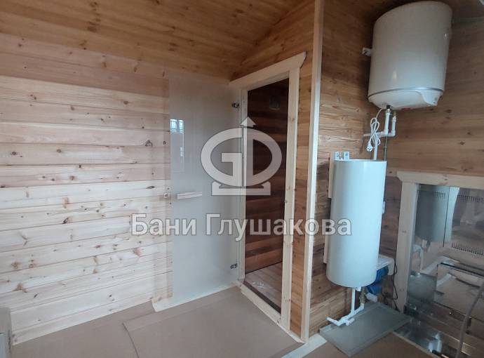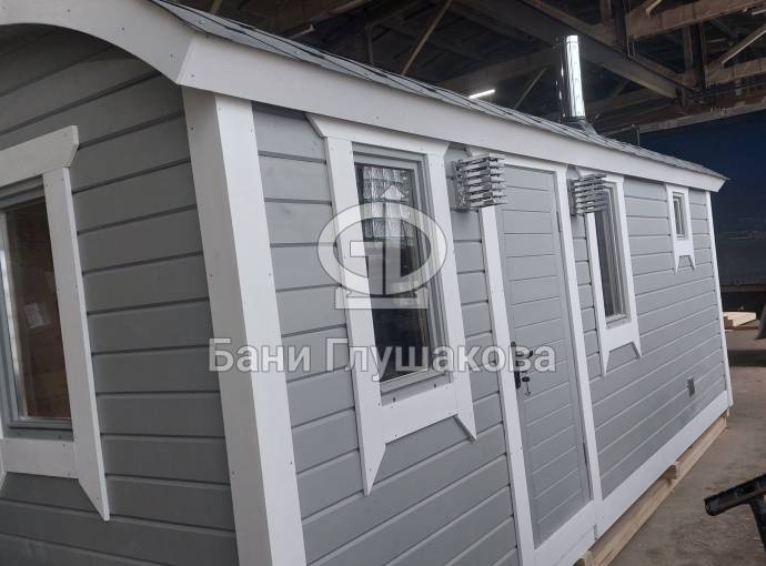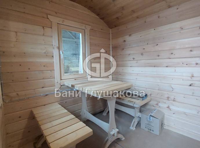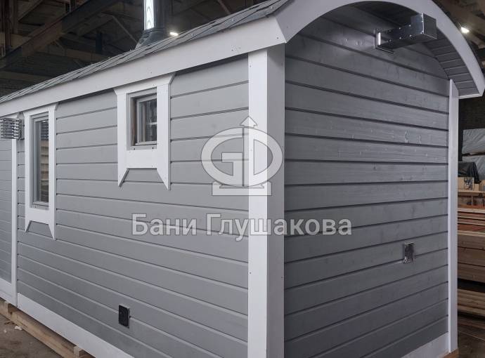 Повтор бани №82300209: перевозная баня «Буханочка» №82400239 из клееного бруса 90х140 мм для выставки. Иготовлена 13 мая 2024 года.
