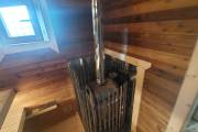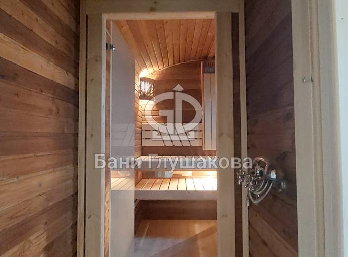 В душе помимо стандартной душевой системы есть обливное устройство «Обливасту» — можно окатить себя холодной водичкой после горячей парной.