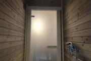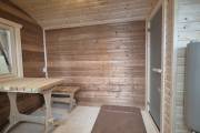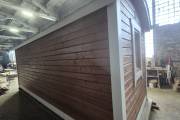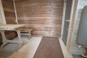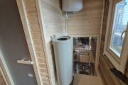 Размер 2,2х6 метров. Внутри 3 помещения: комната отдыха, помывочная и душ. Комплектация топ: обливное устройство «Обливасту», вентиляция «Второе дыхание» и «Димасту», металлический экран вокруг печи и удобные клапаны-задвижки. В общем, эта банька собрала в себе все наши последние улучшалки.