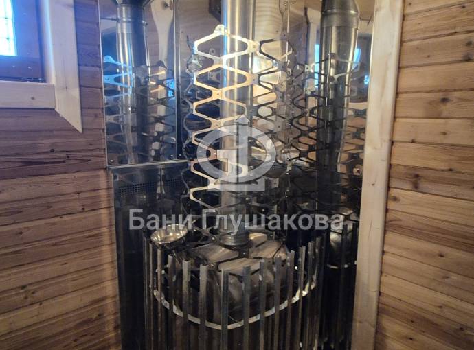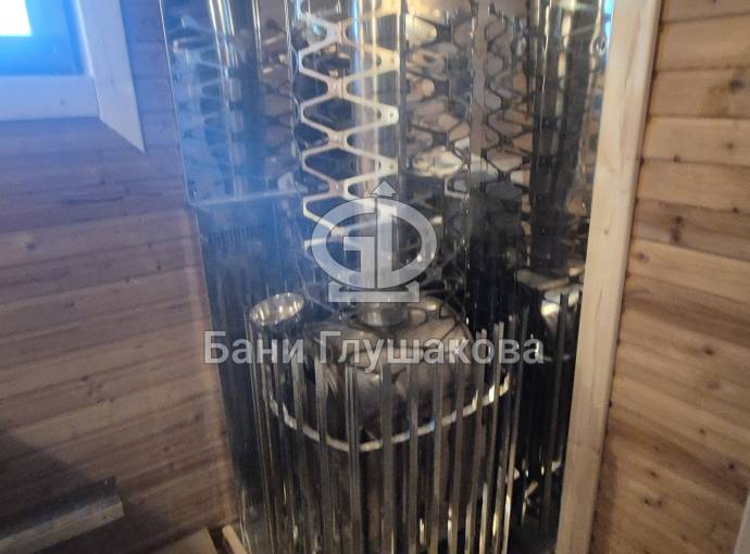 Установлена очень мощная печь с закрытой каменкой «ГИД 4», которая обеспечит отличный лёгкий пар.