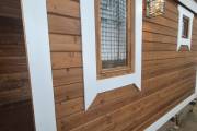 Сделана из клееного термобруса – на сегодняшний день это самый технологичный и надежный материал из дерева. Полное отсутствие усадки, деформации, растрескивания.
