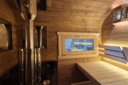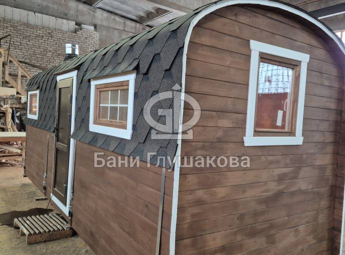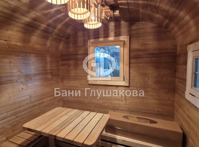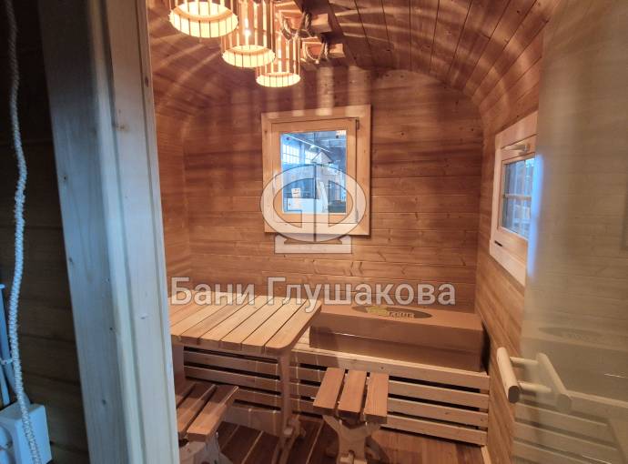 Материал корпуса: Баня изготовлена из термированной бочковой доски. Применение термодерева гарантирует стабильность геометрии конструкции, устойчивость к гниению и вредителям, а также придает древесине благородный оттенок и приятный аромат.