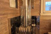 Большая парная: «Сердце» бани. Здесь установлена мощная печь ГИД 4, которая быстро прогревает помещение до нужной температуры и обеспечивает густой, качественный пар. Парная укомплектована удобными полками, позволяющими комфортно разместиться нескольким людям.