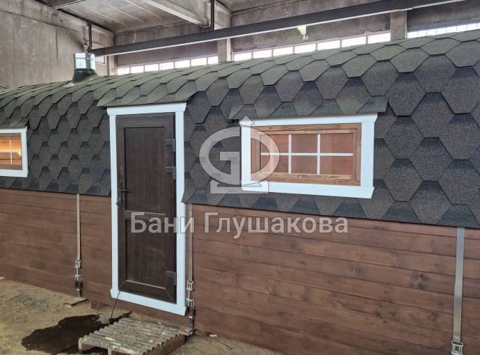 Габариты: Удобный размер 2,4 х 6 метров позволяет легко транспортировать баню и устанавливать её даже на небольших участках.