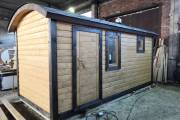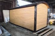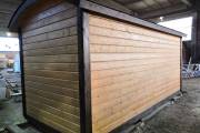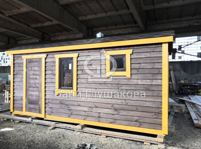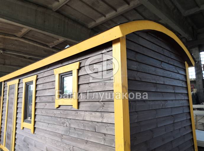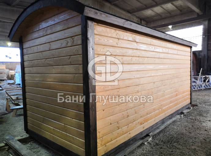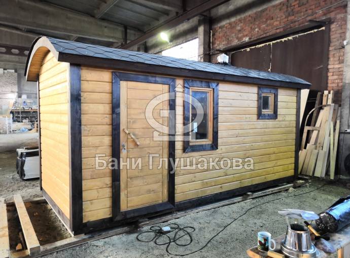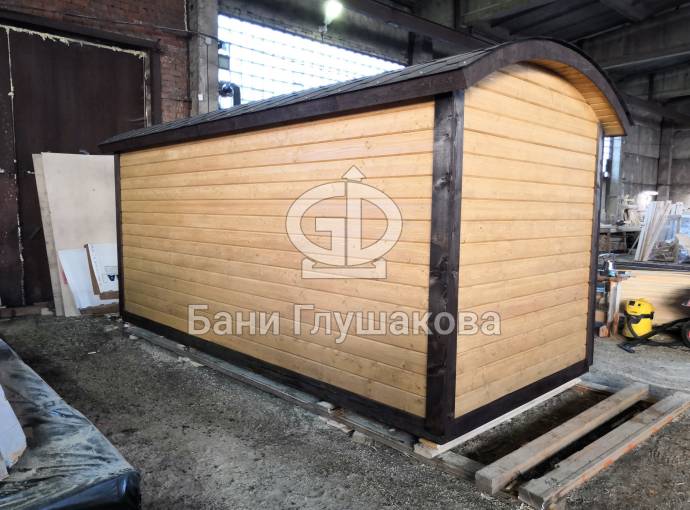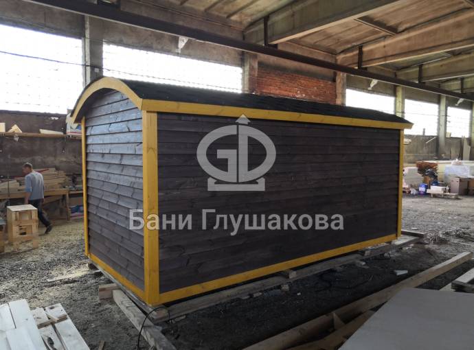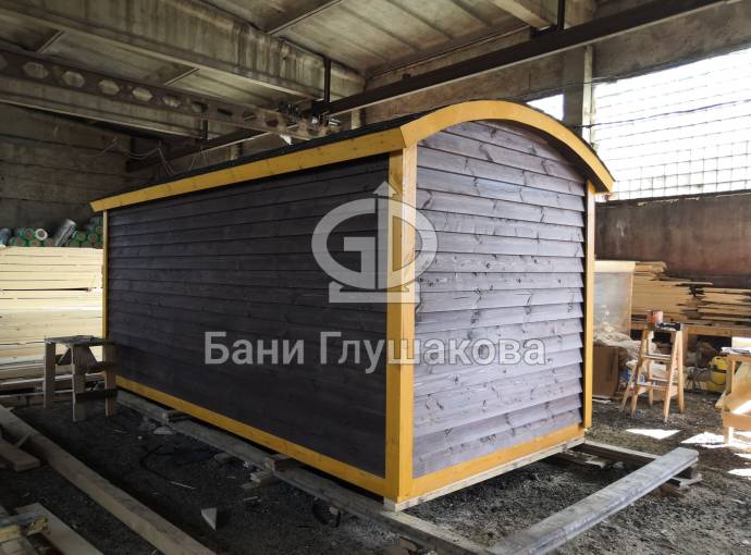 Собирается такая баня в цеху всего за 4 дня. На пятый уже будет установлена на участке.