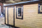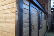 Обратите внимание на очень красивую внешнюю отделку — таким сочетанием «Биотекса» мы красили баню впервые. Основной цвет «Палисандр», обводка «Сосна». Удачное сочетание, будем предлагать и такой вариант нашим клиентам.