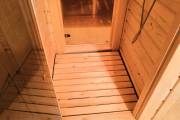 Можно и нужно заказать в парной пластиковый пол во всю парную с деревянными трапиками, Ссылка на фото и видео