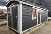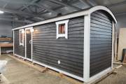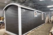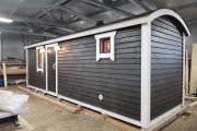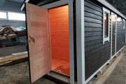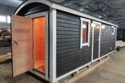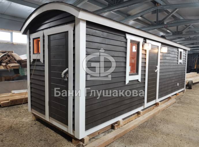 Новый вариант перевозной бани «Буханочка» с отдельным входом в хозблок. Можно использовать под биотуалет.