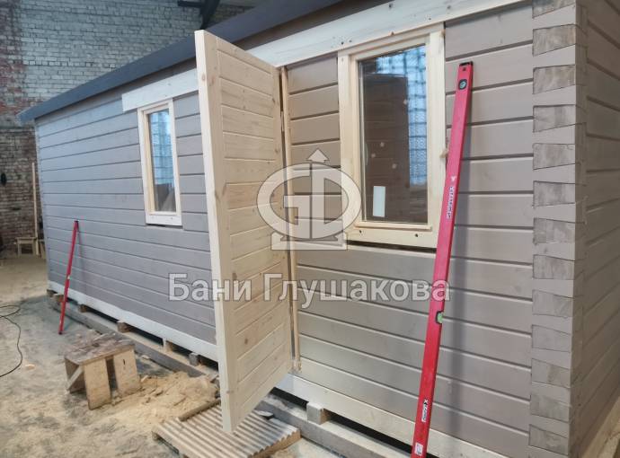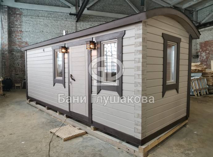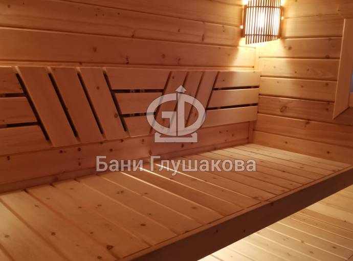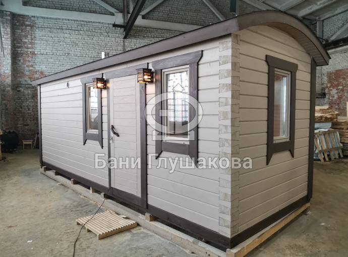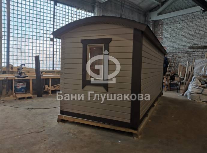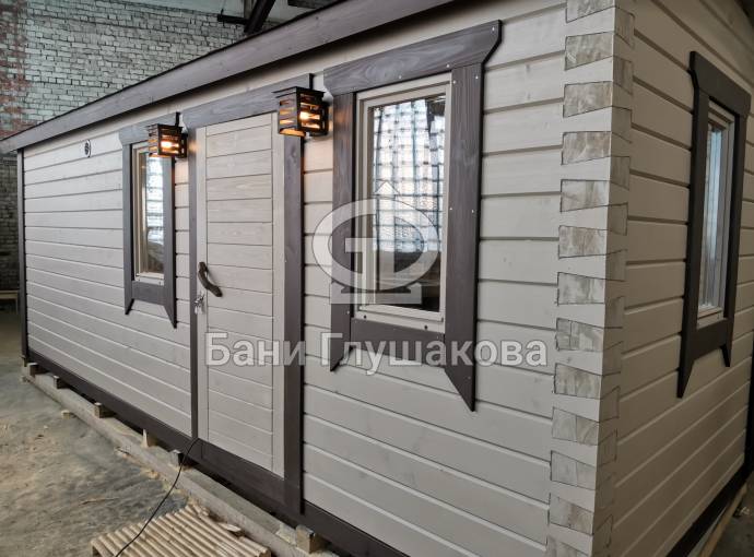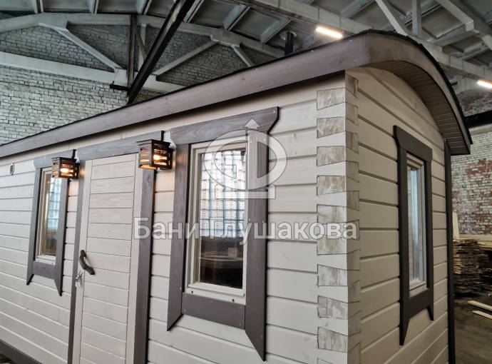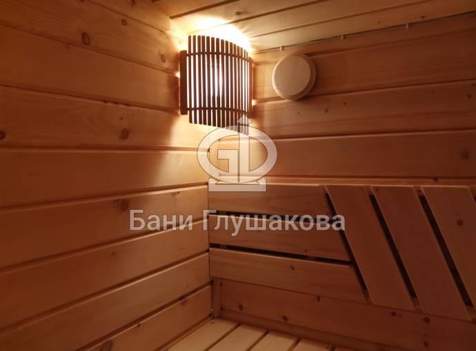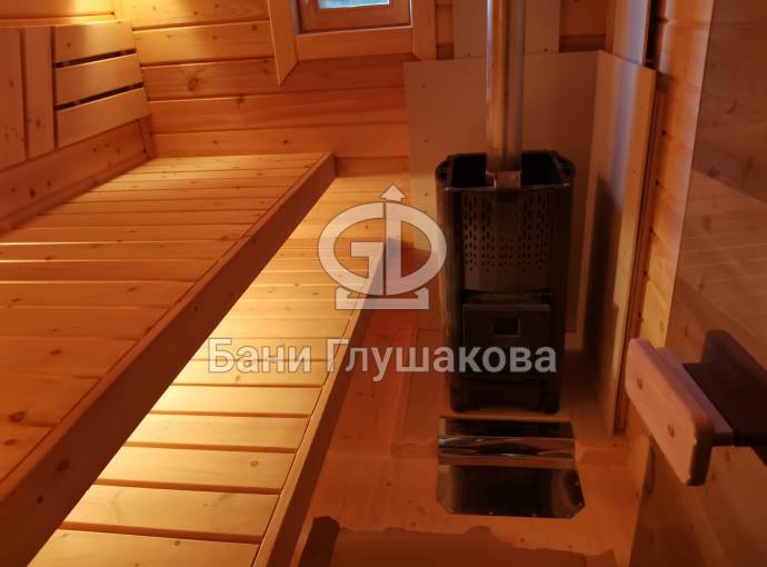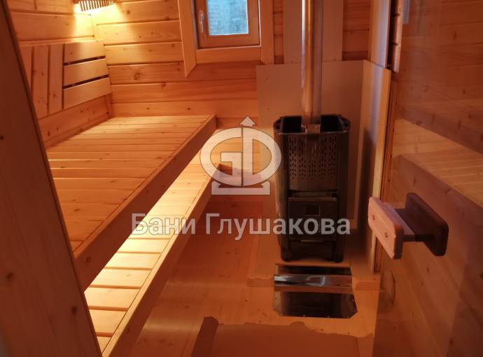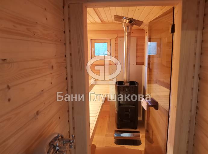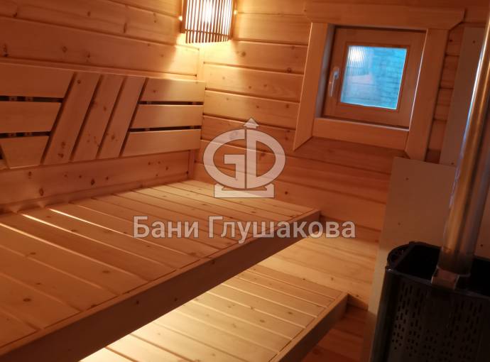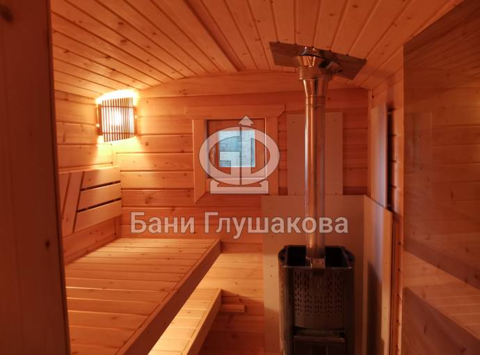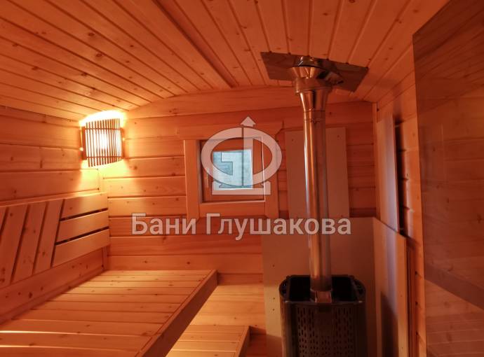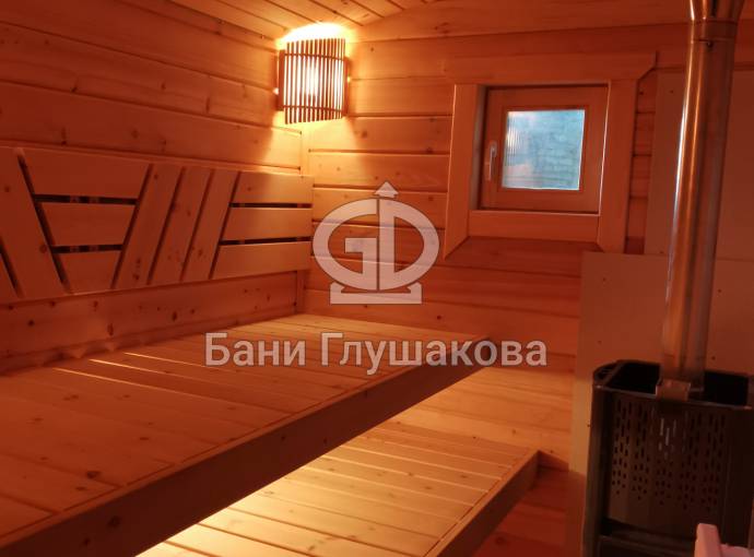 Эта баня была сделана и продана, она выставлена как пример возможного варианта исполнения.